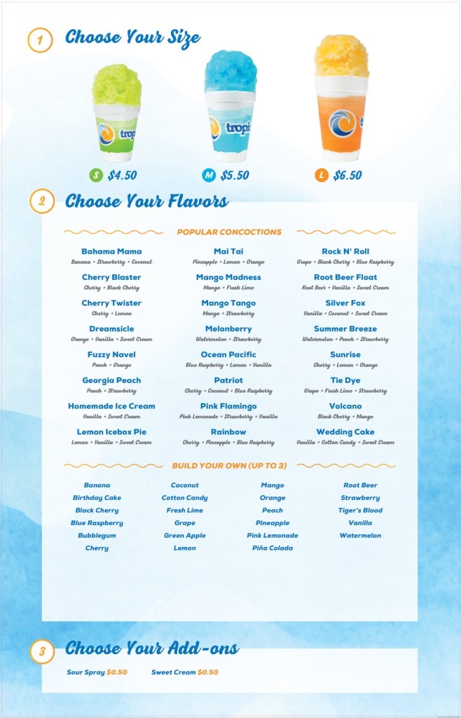 For full ingredients lists, follow the links below. Note that we add cane sugar and water to the Tropical Sno mix and water to the Dole Soft-Serve mix.